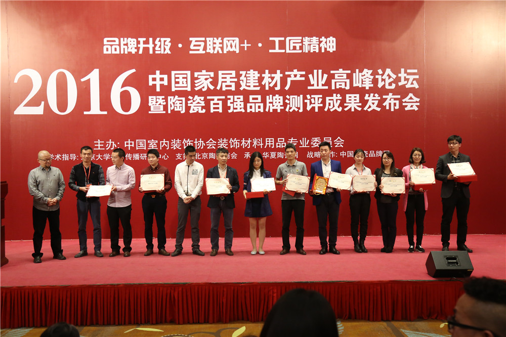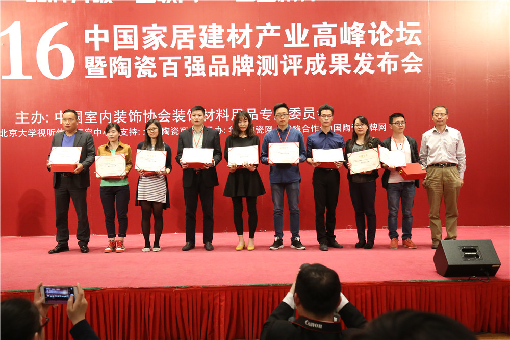 2016年4月9日下午,由中室协材料委主办、华夏陶瓷网承办的2016中国家居建材产业高峰论坛暨陶瓷百强品牌颁奖盛典,在中国最高学府北京大学隆重举行。