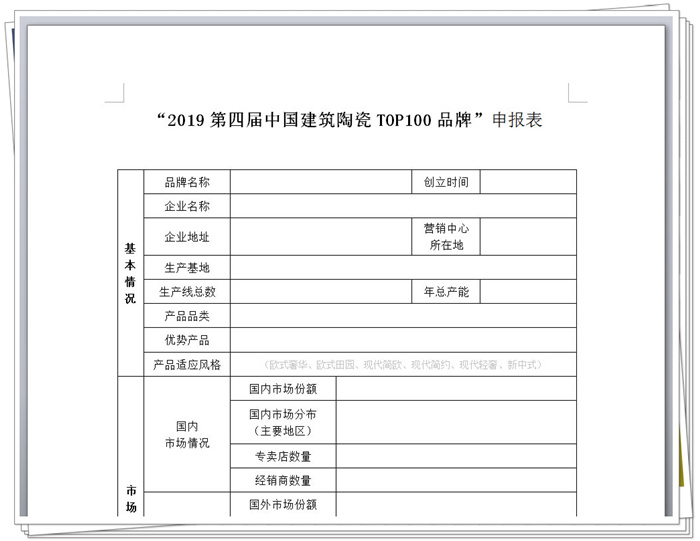2019第四届中国建筑陶瓷TOP100品牌申报表